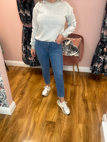 O&F Star Embroidered Sweatshirt - Washed Grey